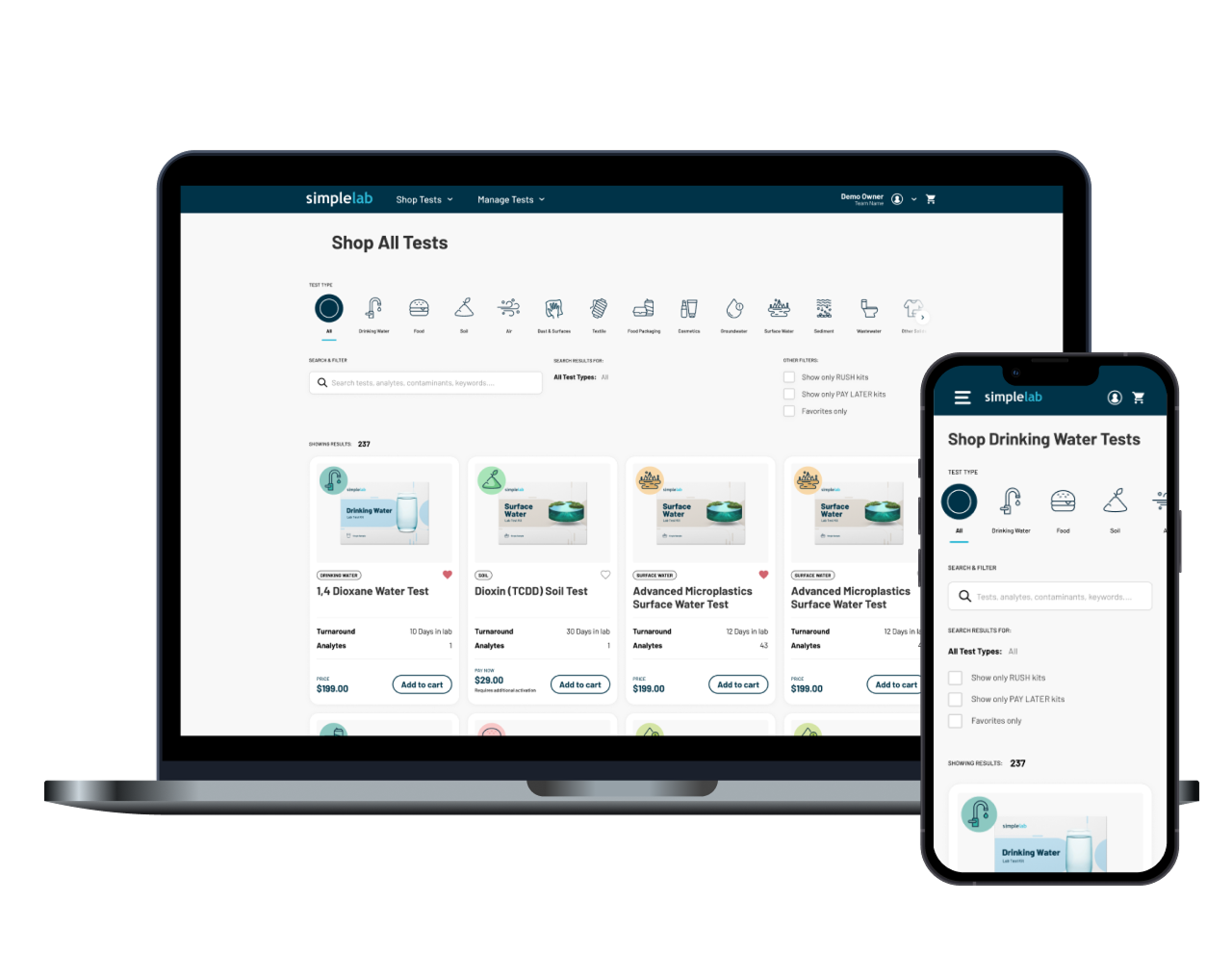 SimpleLab revolutionizes the way your business handles environmental sampling, testing, and data management. Our cloud-based platform and logistics services provide all the tools you need—without the overhead—offering access to over 300 tests to meet your specific needs.