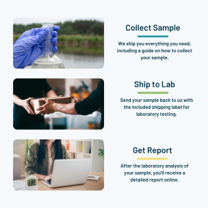 Mail-to-lab test kit includes all sampling materials, prepaid shipping, lab testing, and digital report-back.