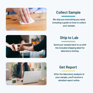 Precision testing of toxic lead dust on all surfaces. One wipe sample per kit. Includes all sampling materials, prepaid round trip shipping, certified lab analysis, and digital report to help renters, renovators, and property owners maintain safe indoor environments. Dealing with lead paint? See our Lead Paint Chip Test.