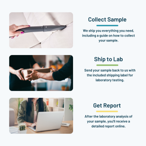 Mail-to-lab test kit includes all sampling materials, prepaid shipping, lab testing, and digital report-back.